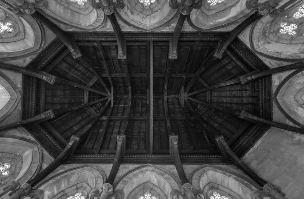 The design, reflecting Kennedy's extensive ecclesiastical work, includes French Gothic elements such as a bell tower and a striking interior with a hammerbeam roof.
