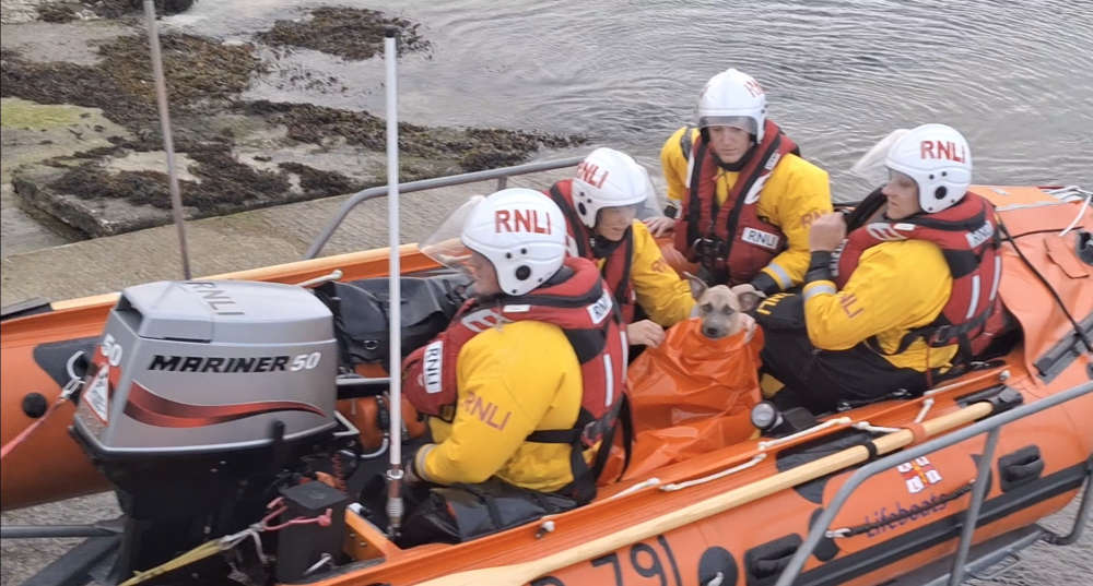The RNLI volunteers found Missy, who although reluctant at first, was lifted onto their lifeboat before a survival blanket was wrapped around her.
