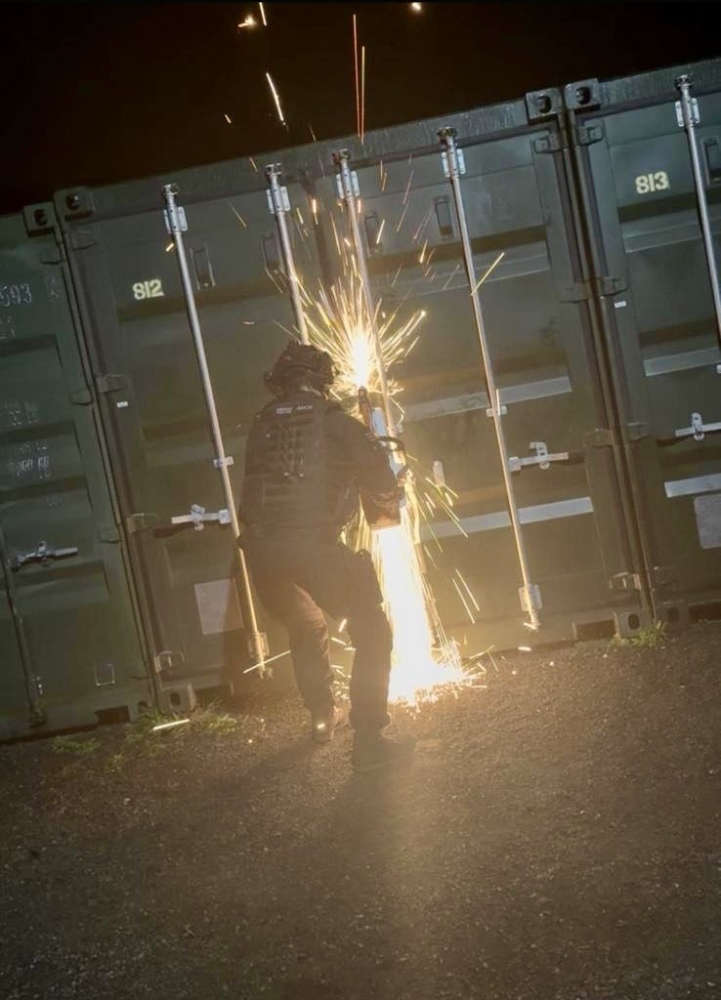 Duty patrol officers located and opened a secure container after the pair acting suspiciously on Wednesday night.